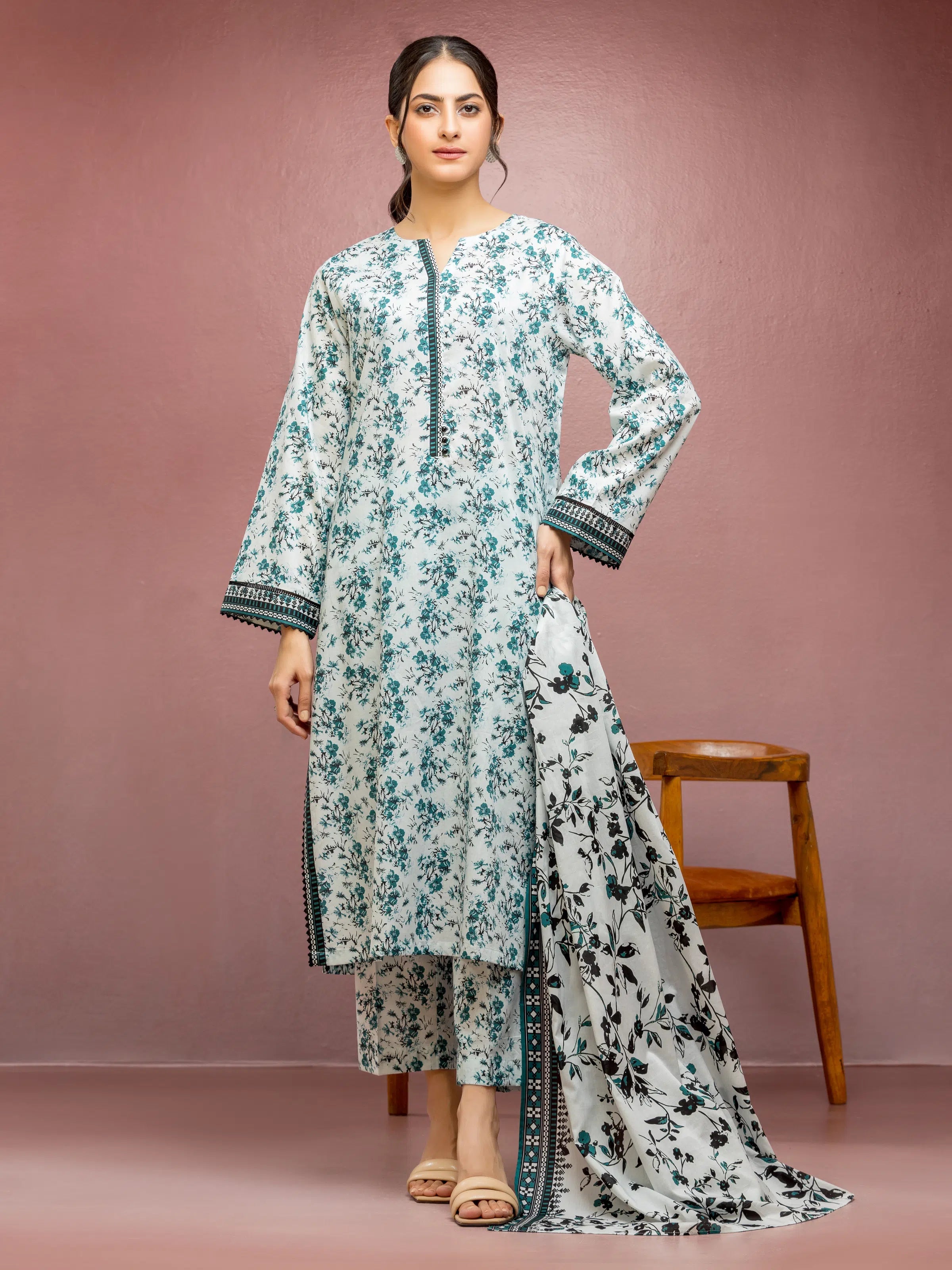 edenrobe Allure Lawn Unstitched Printed 3Pc Suit EWU5A1-35104