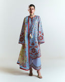 • PRODUCT DESCRIPTION: Soft, romantic, and intricately detailed—this light blue ensemble captures the beauty of delicate craftsmanship. The shirt features a floral printed base, elevated with multicolor embroidery that blooms gracefully along the neckline, hem, and sleeves. Intricate scalloped borders and tassel ties add depth and charm to the design, enhancing its feminine elegance. Paired with light blue culottes embroidered to mirror the shirt’s detailing, the look maintains a cohesive and refined aesthetic. The digital printed silk dupatta brings a dreamy finishing touch, with painterly florals and soft hues that flow beautifully with every step. A timeless yet fresh statement for the season.