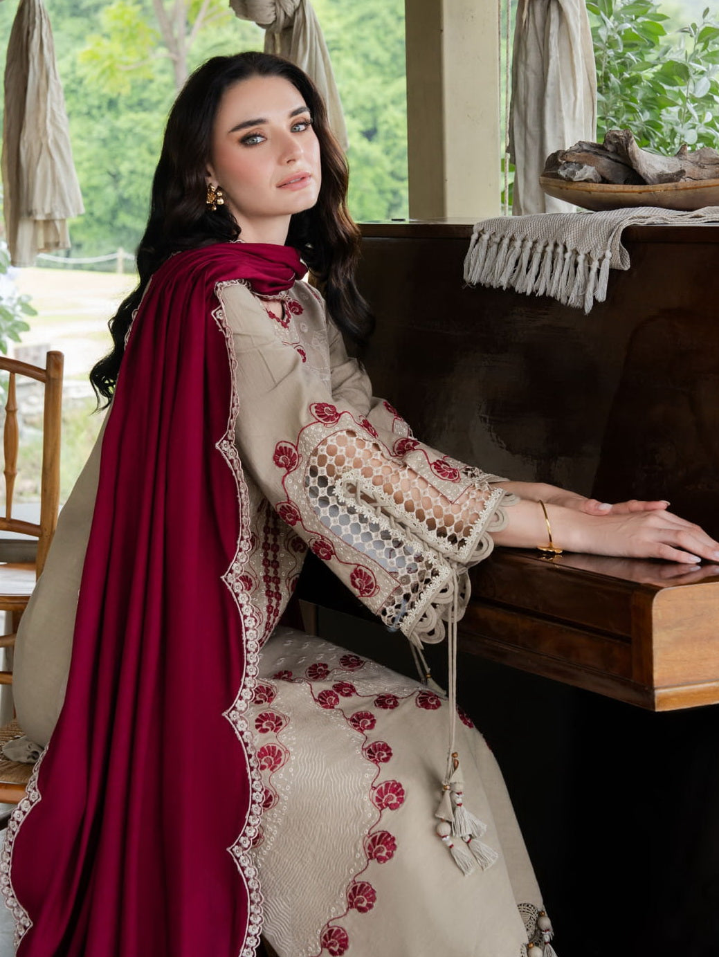 Faiza Faisal Dastaan Embroidered Khaddar Unstitched 3Pc Suit - AILEEN