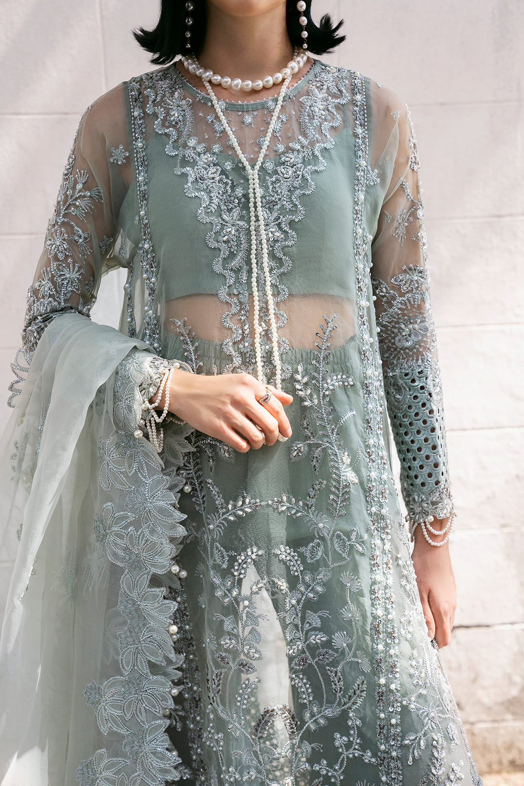 - Hand Embellished Sleeves On Organza 0.66 Meter