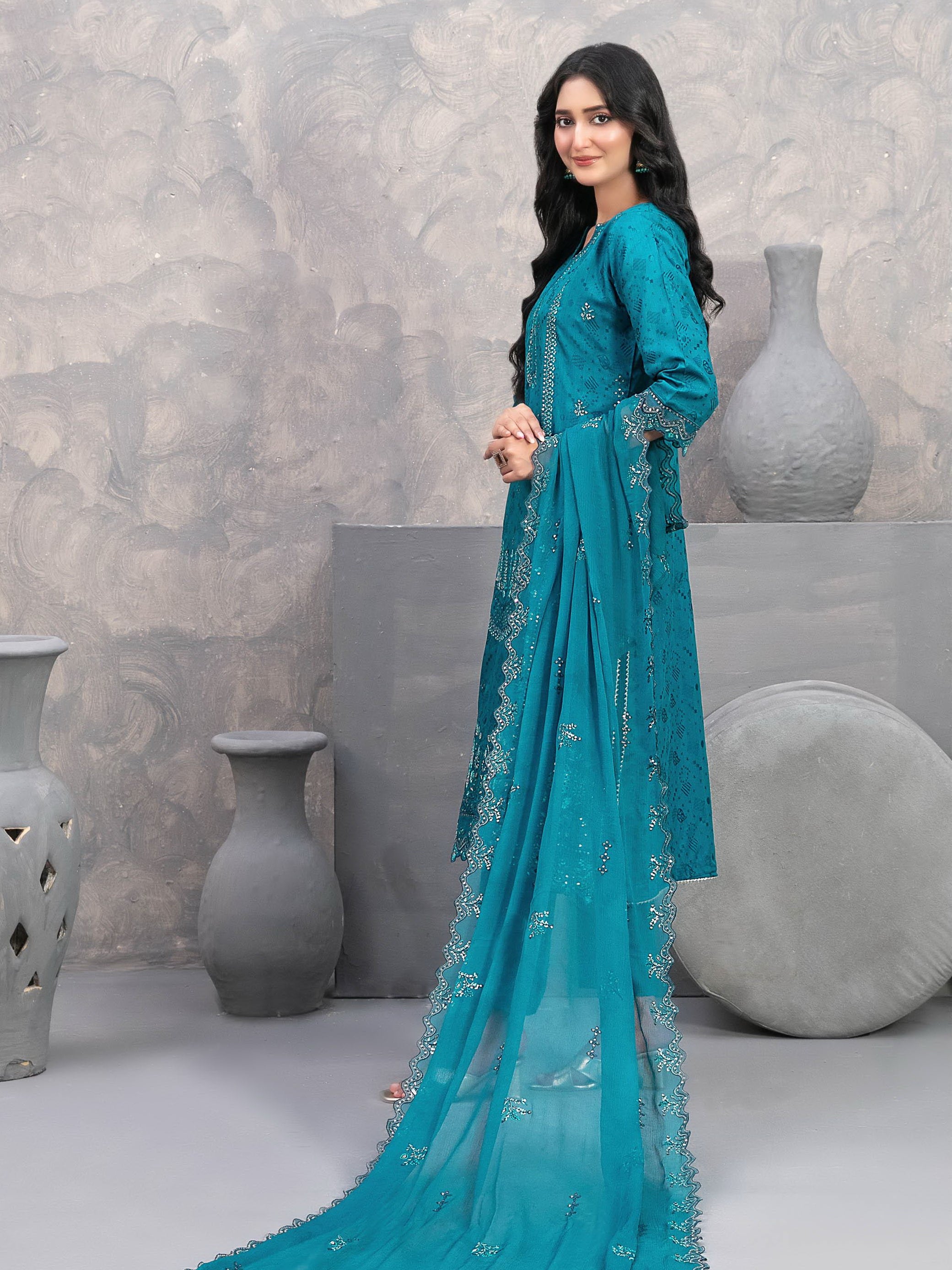 - Women's Un-Stitched Embroidered Viscose Jacquard 3Pc Suit