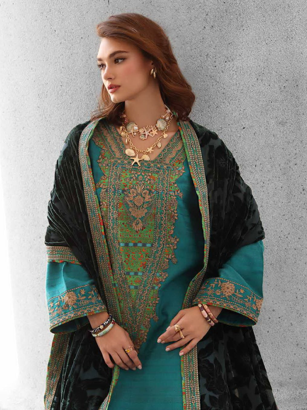 Collection: Charizma Poshima Vol-03 Embroidered Leather with Plachi Velvet Shawl