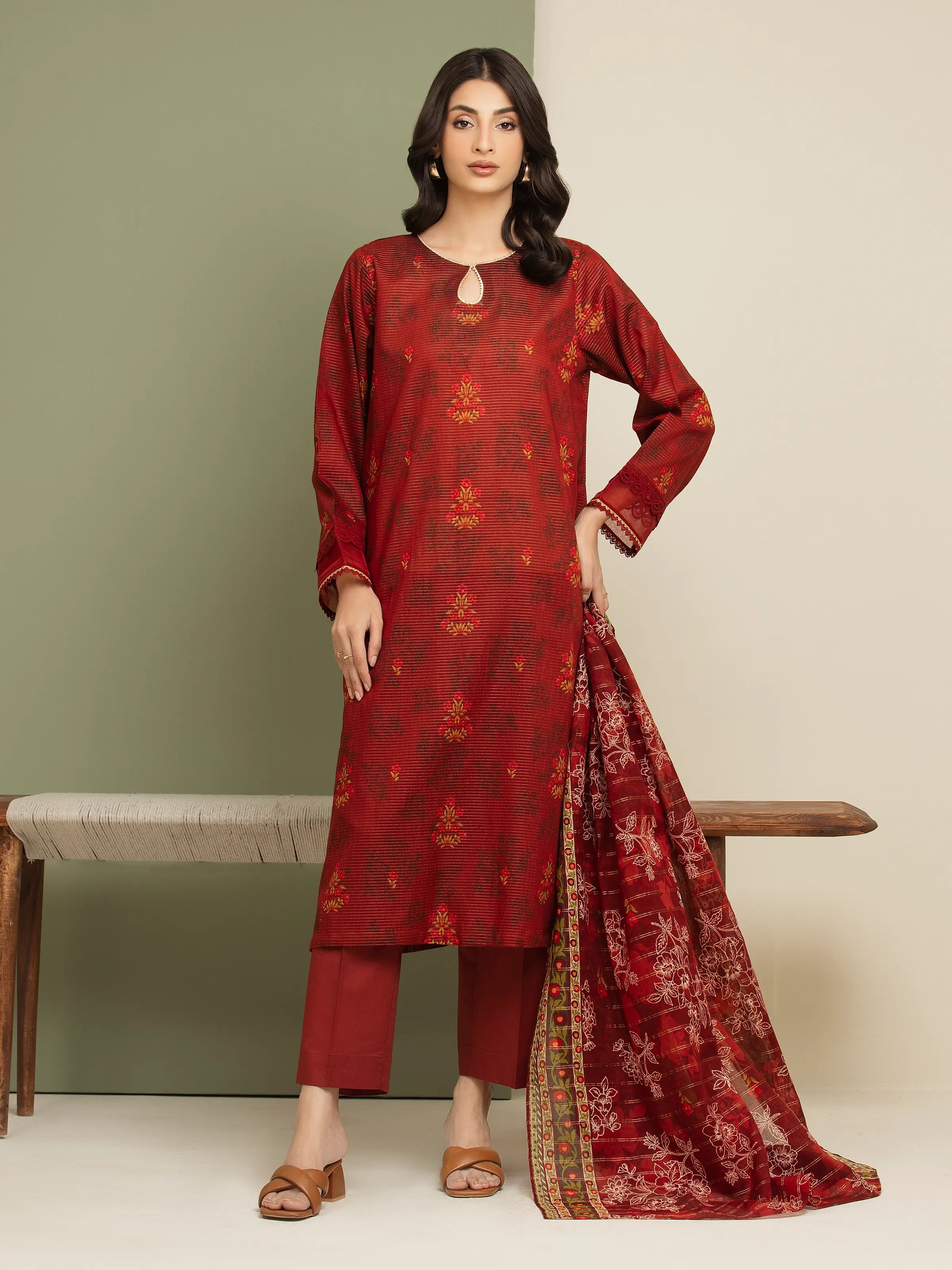 edenrobe Merak Unstitched Printed Zari Lawn 3Pc Suit EWU5M6-009