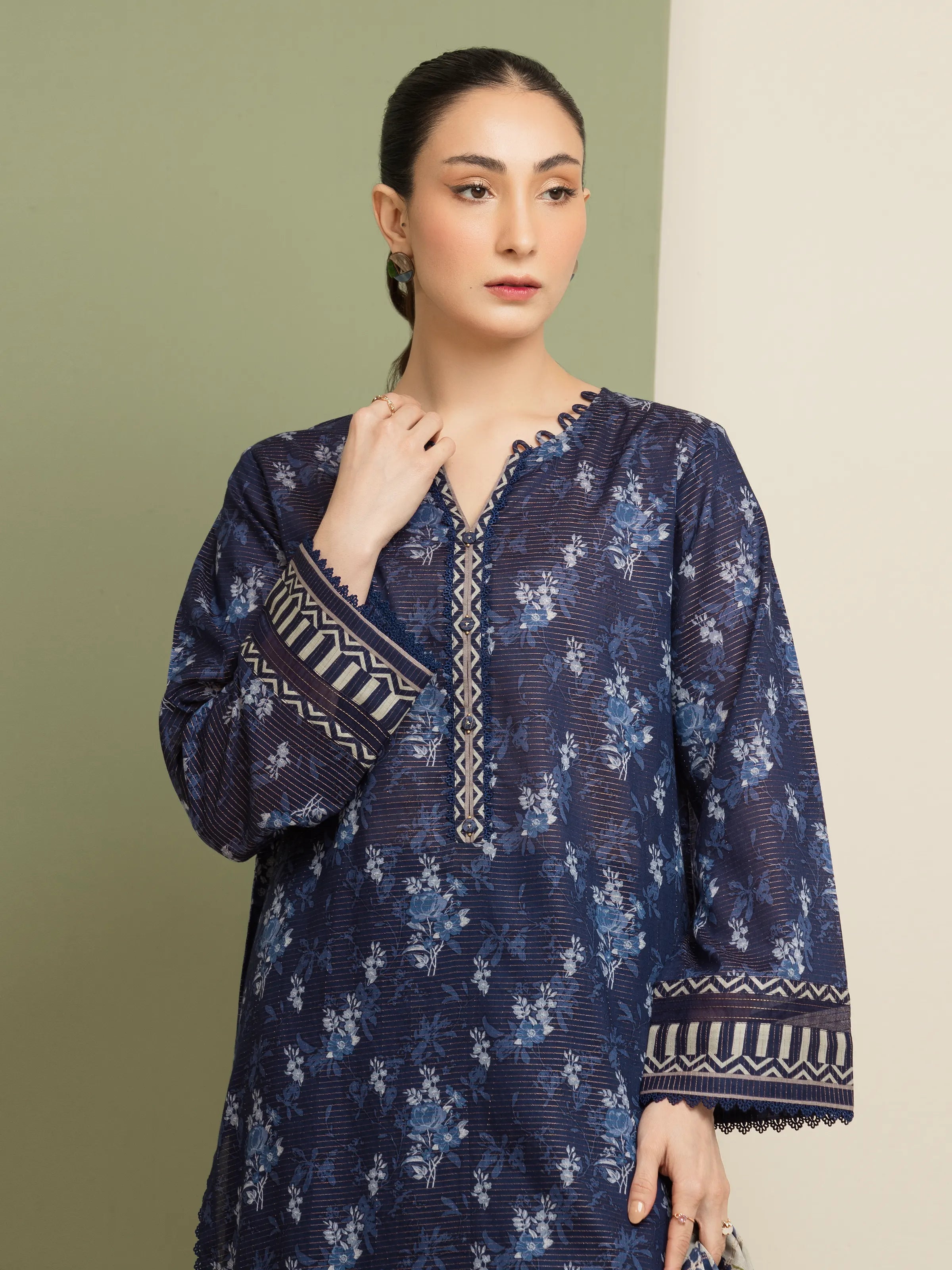 Shirt: Printed Zari Lawn 3m