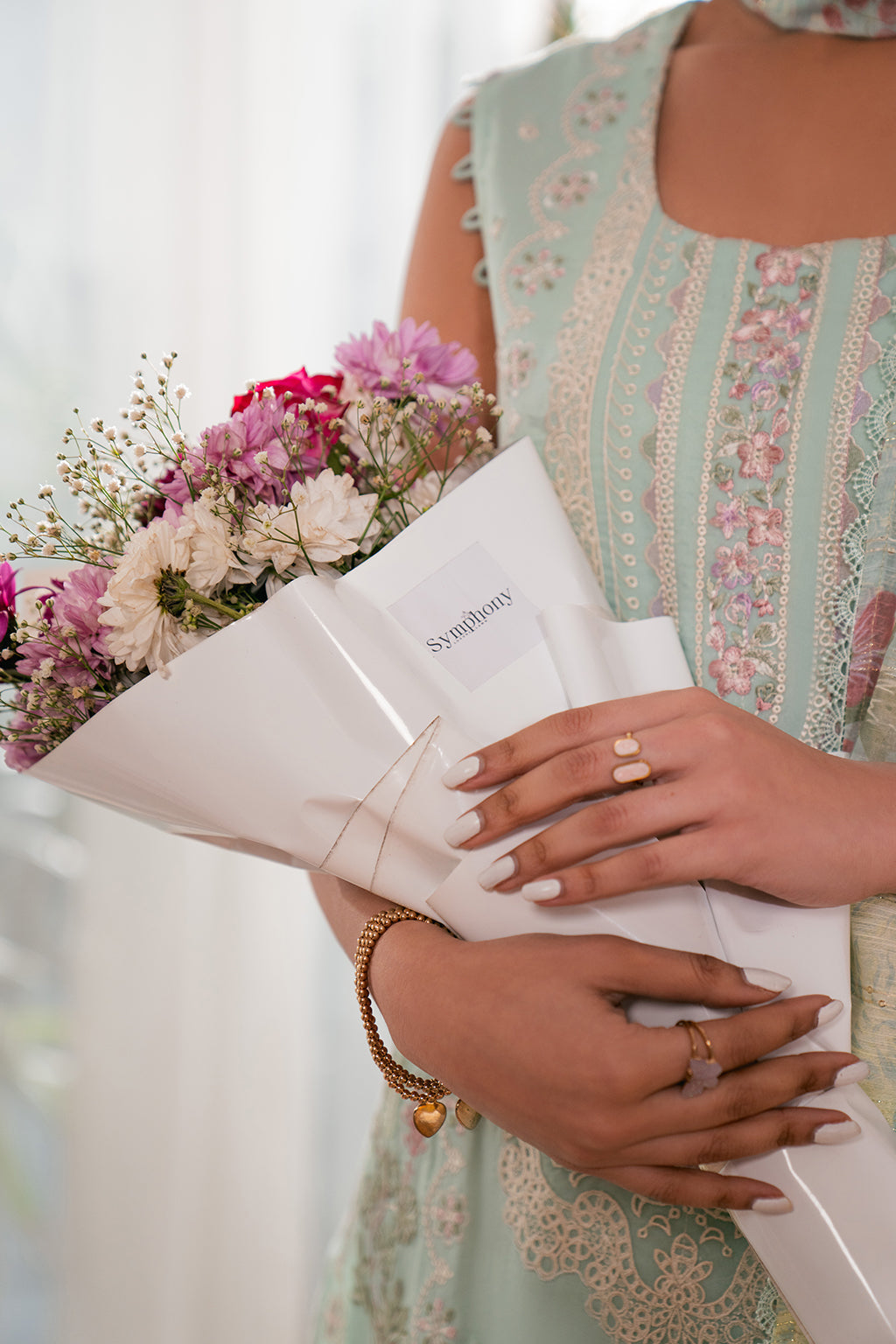 Neeshay Symphony Embroidered Lawn Unstitched 3Pc Suit - MINTY