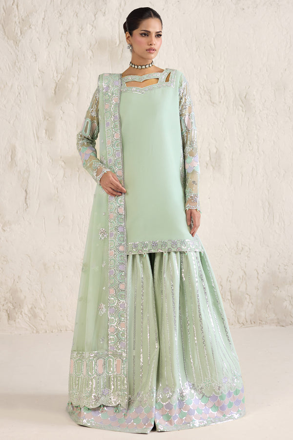 Farasha Embroidered Luxury Chiffon Unstitched 3Pc Suit - Aqua Bell