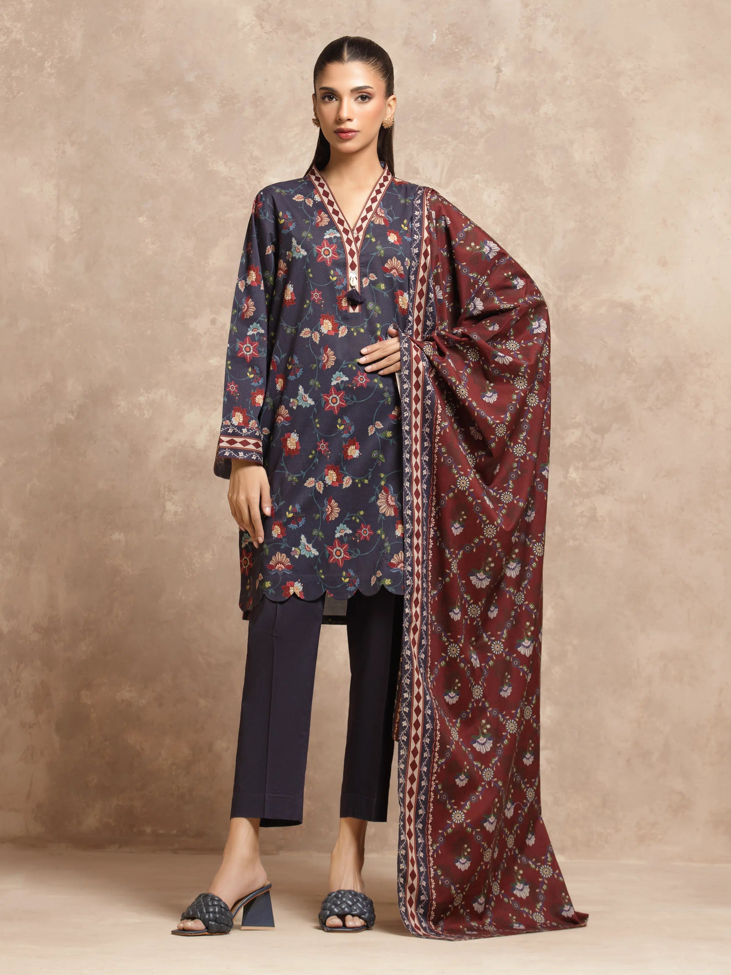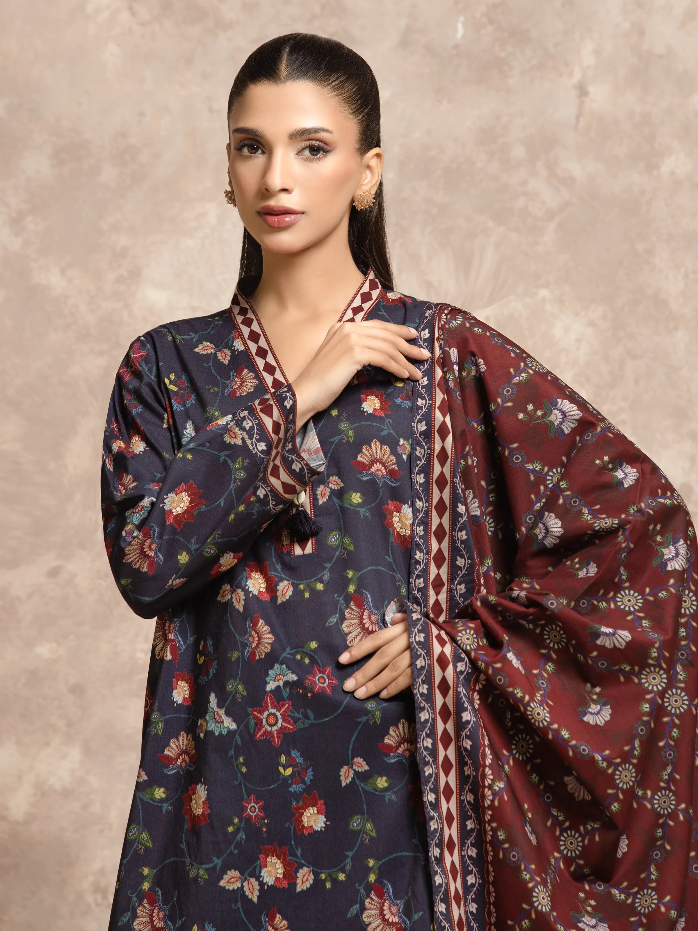edenrobe Allure Unstitched Printed Khaddar 3Pc Suit EWU5A3-36028