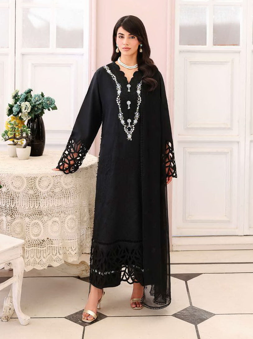 Roheenaz Veil of Summer Embroidered Lawn Unstitched 3Pc Suit - BLACK LACE