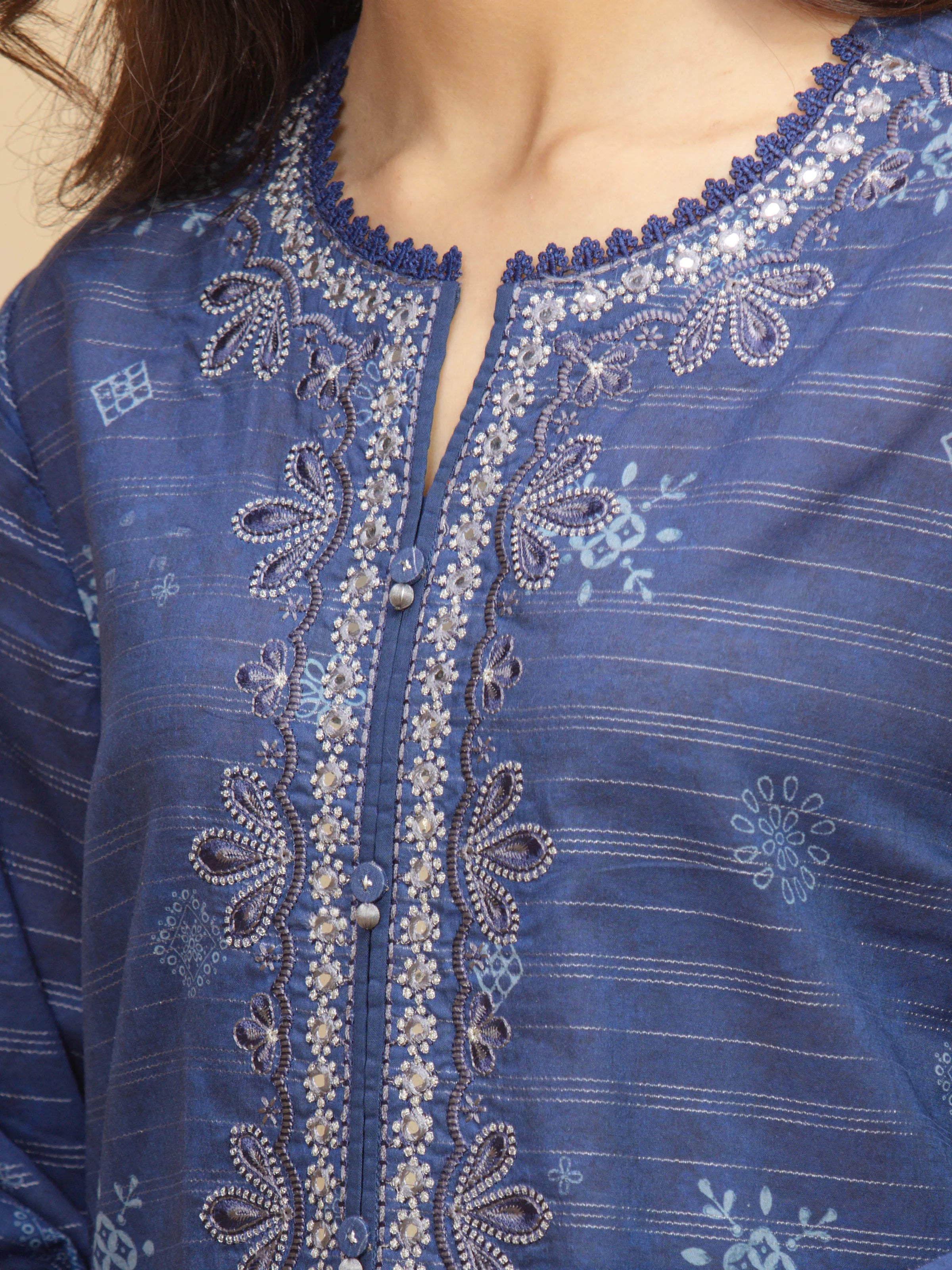 - Embroidered Neckline on Organza