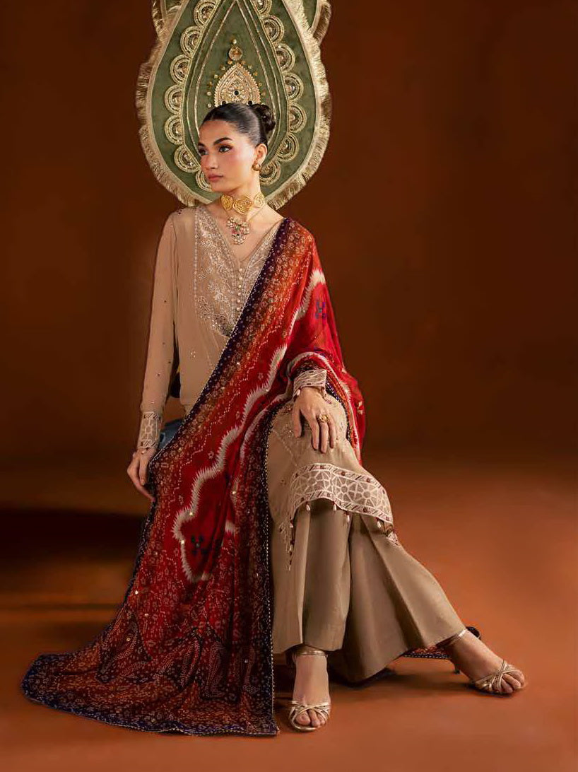 Nureh Mukeshkari Embroidered Mukesh Chiffon Unstitched 3Pc Suit MK-22