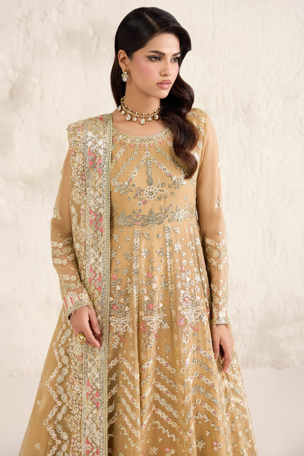 Farasha Embroidered Luxury Chiffon Unstitched 3Pc Suit - Mellow Dream