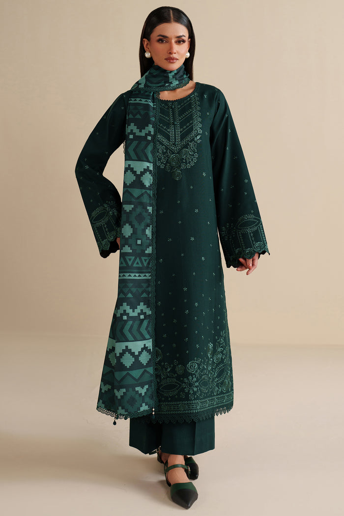 Farasha Winter Spell Embroidered Khaddar Unstitched 3Pc Suit - Opera