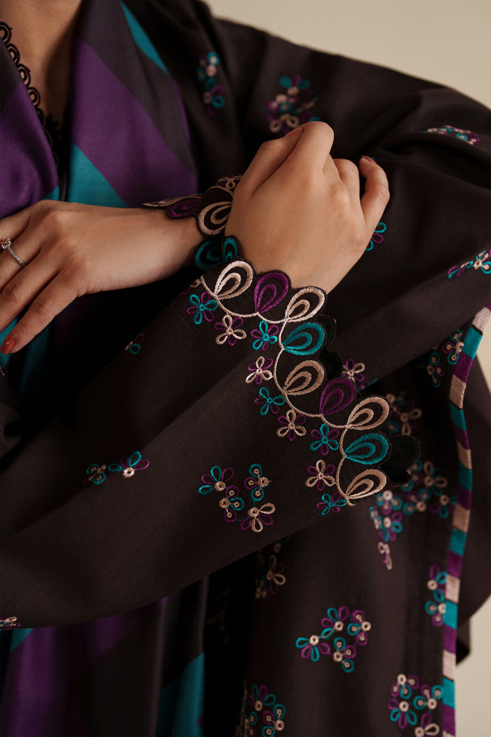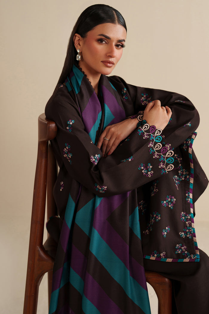 Farasha Winter Spell Embroidered Khaddar Unstitched 3Pc Suit - Maple