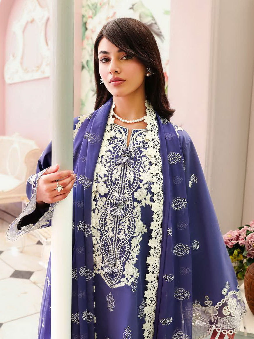 Roheenaz Veil of Summer Embroidered Lawn Unstitched 3Pc Suit - BLANC MIRAGE