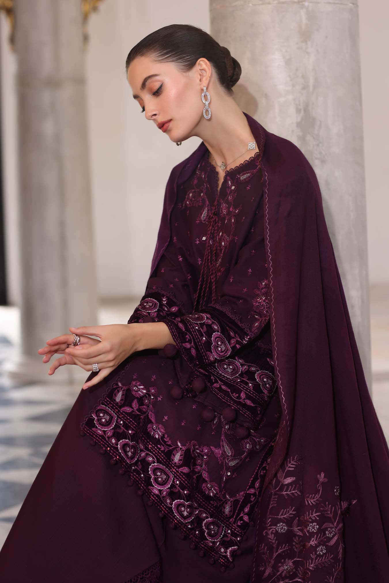 Noor by Saadia Asad Embroidered Khaddar Unstitched 3Pc Suit D-09 Damson