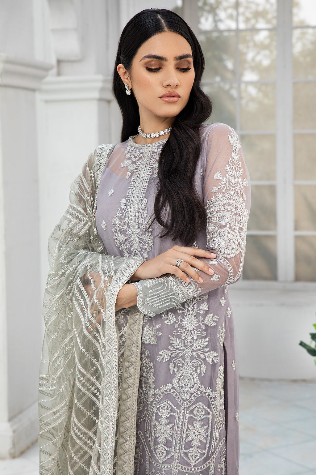 • Dupatta: Contrast Sequins Embroidered Net