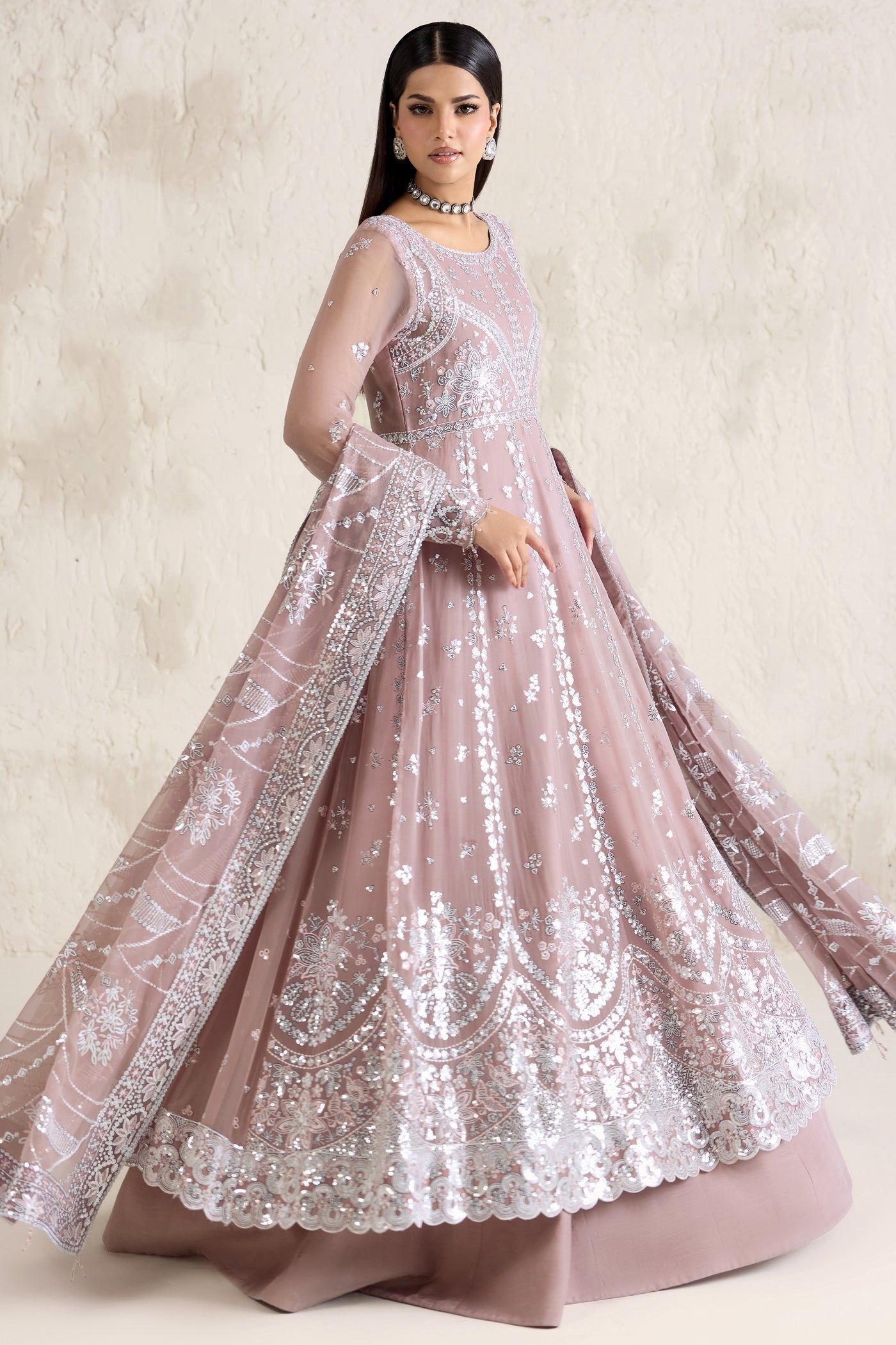 Farasha Embroidered Luxury Chiffon Unstitched 3Pc Suit - Mauve Pearl