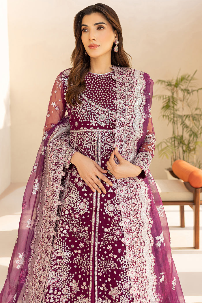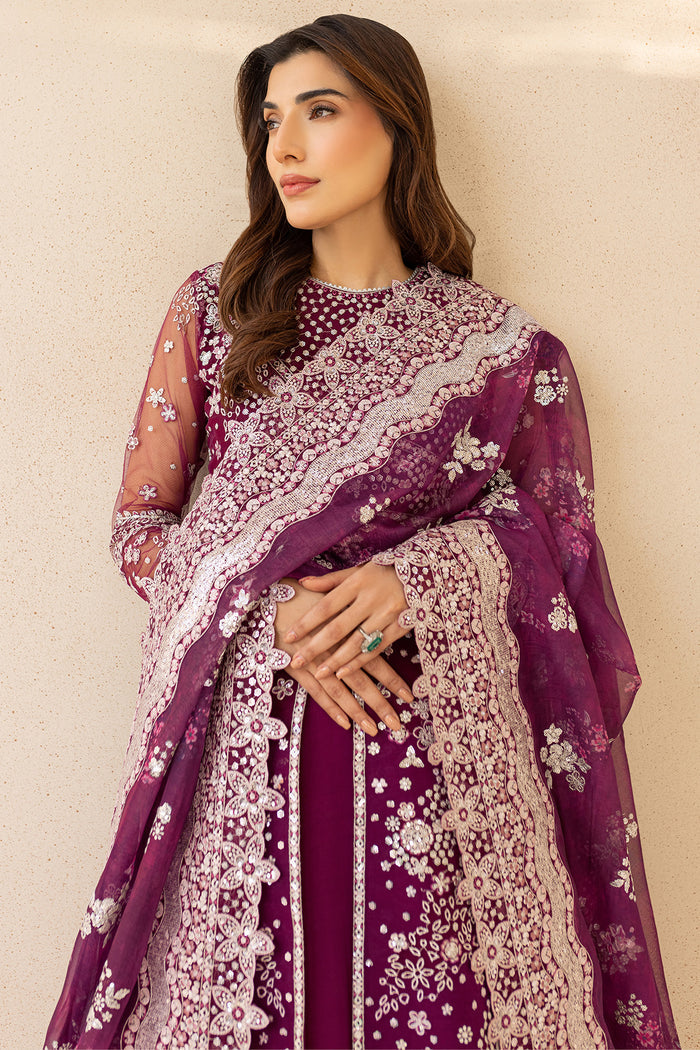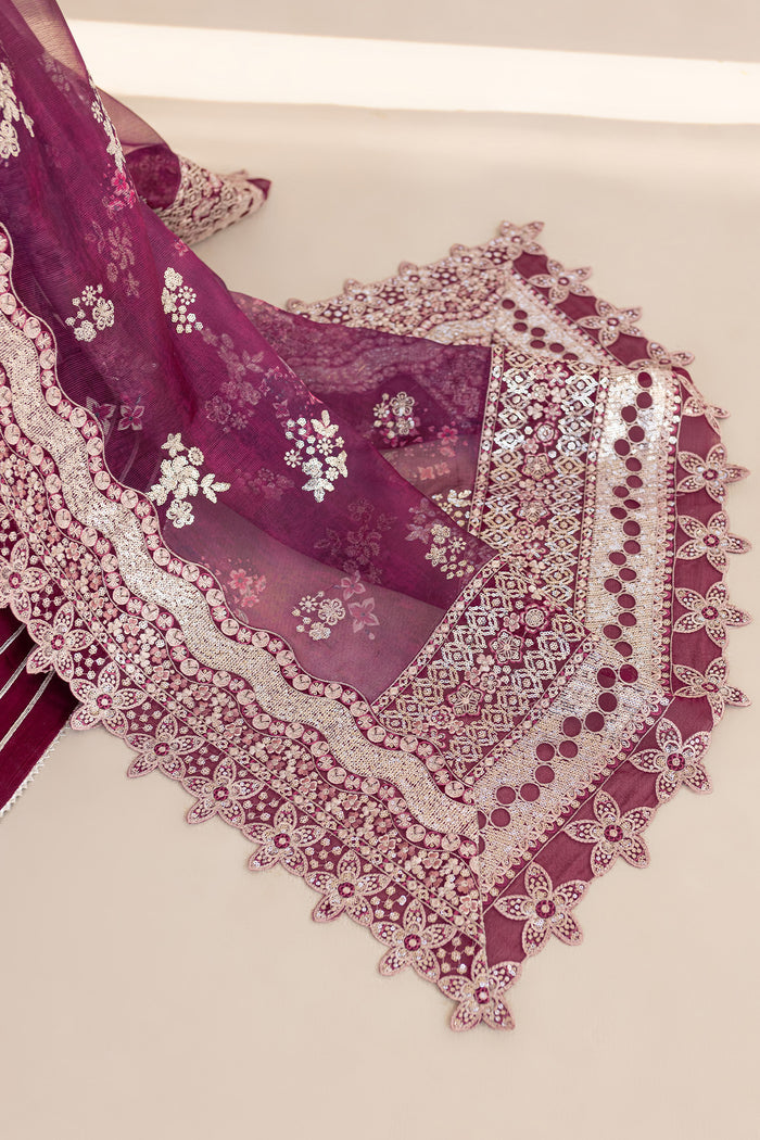 Farasha LU ZELLA Embroidered Net Unstitched 3Pc Suit D-02 MERLOT DUST