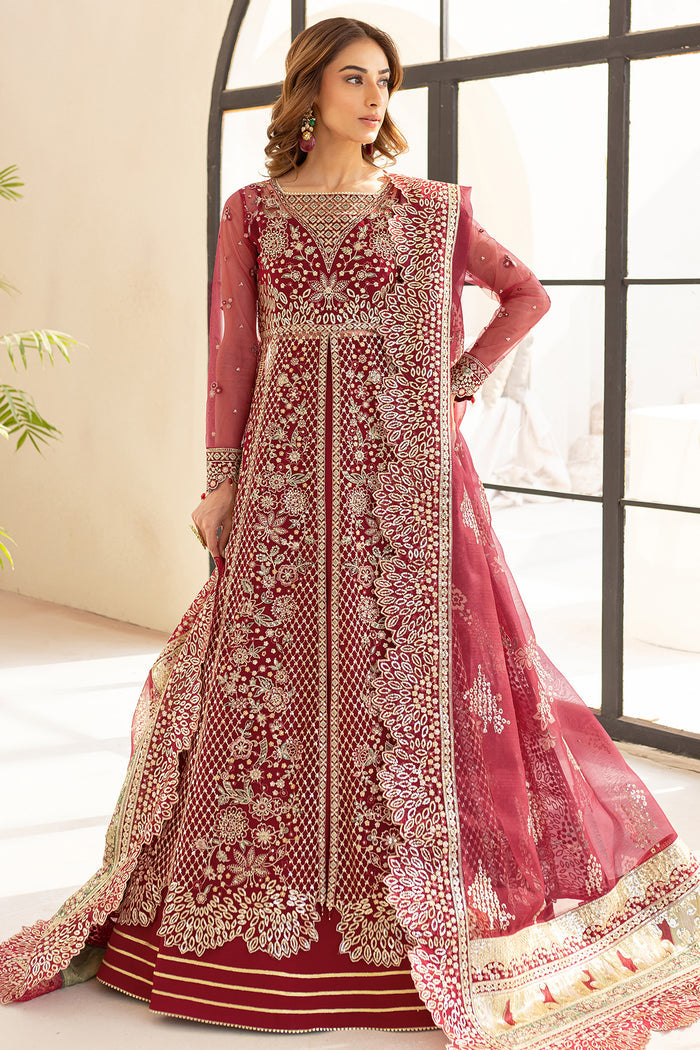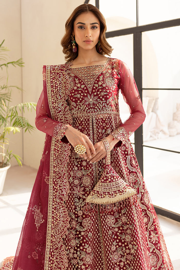 Farasha LU ZELLA Embroidered Net Unstitched 3Pc Suit D-06 CARMINE ALLURE
