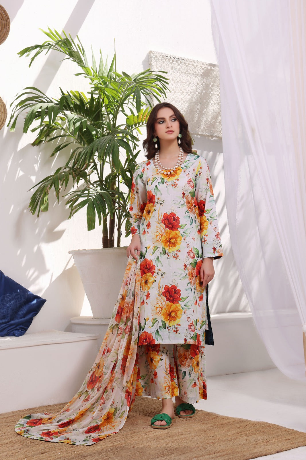 Feathers Unstitched Digital Printed Premium Lawn 3Pc Suit FLORET-FT222