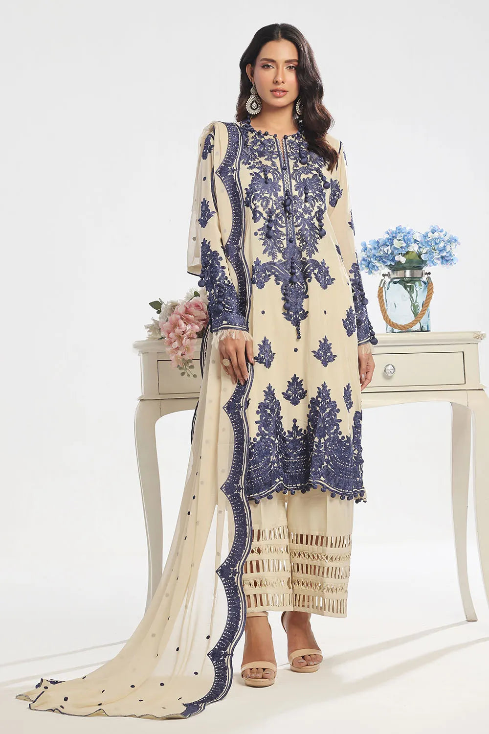 - Embroidered Chiffon Dupatta.