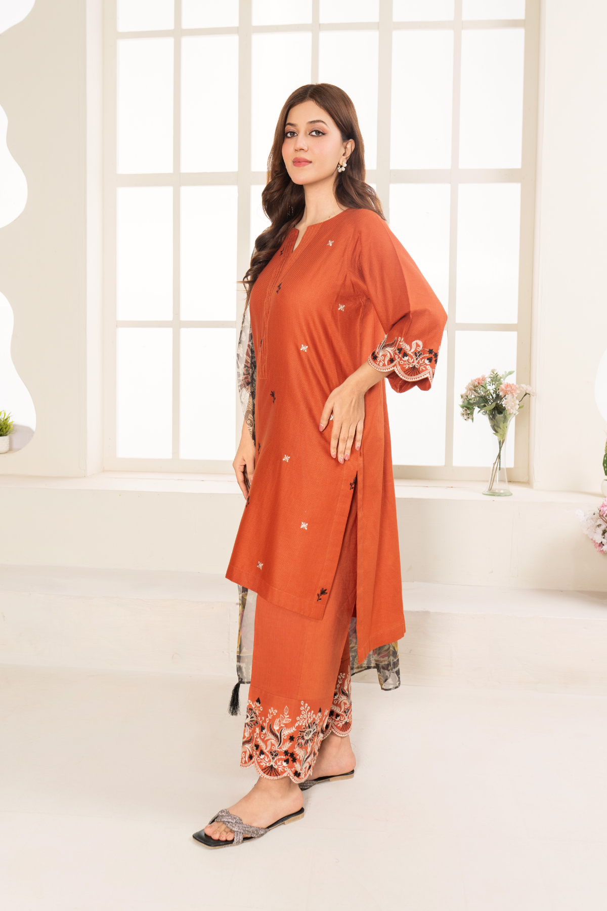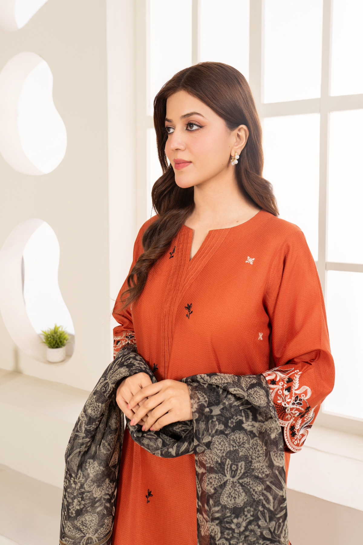 La Rosaa Akgalleria Embroidered Cotton Jacquard Stitched 3Pc Suit - Ga
