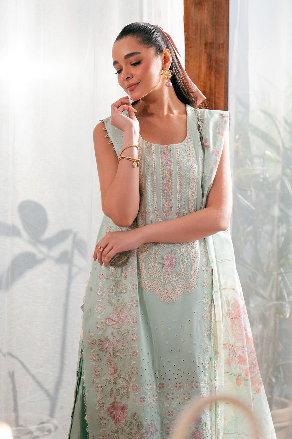 Neeshay Symphony Embroidered Lawn Unstitched 3Pc Suit - MINTY