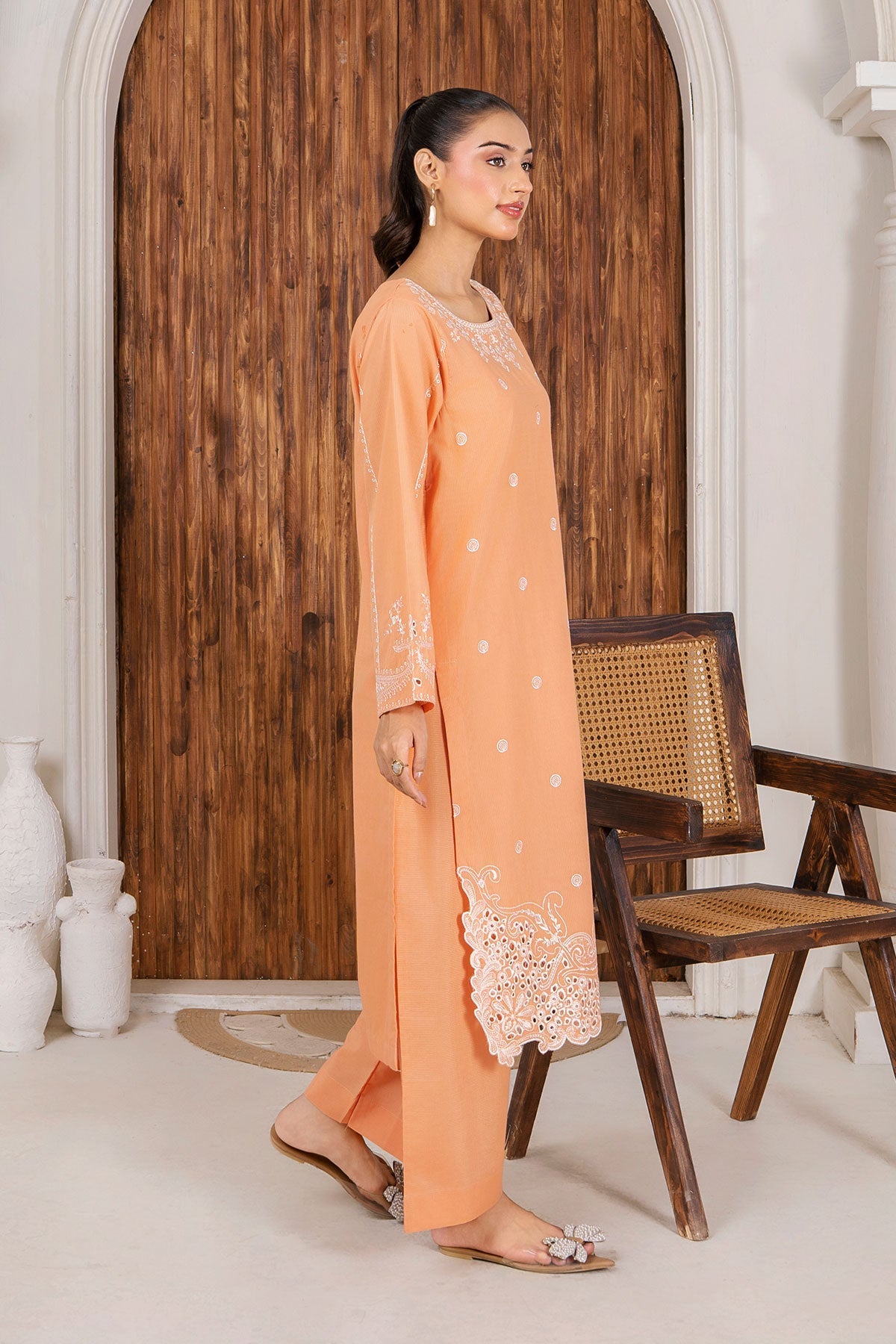 A refreshing 3-piece formal dress in soft light orange — bright, graceful, and perfect for daytime elegance or festive charm.