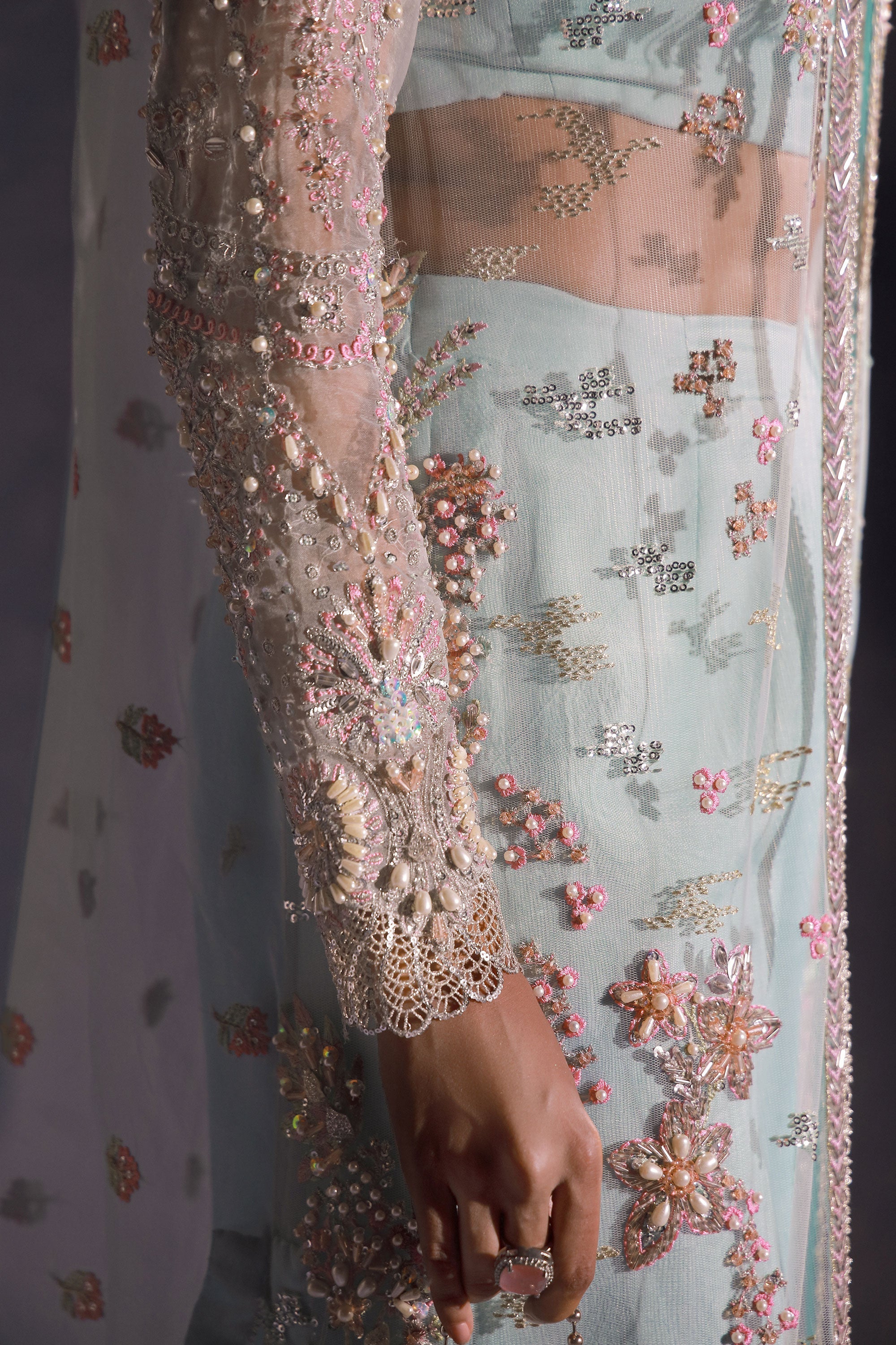 - Embroidered Hand Embellished Sleeves