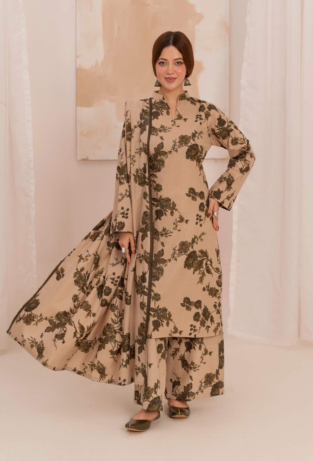 Feathers Digital Printed Dhanak Unstitched 3Pc Suit CALVORE-FT589