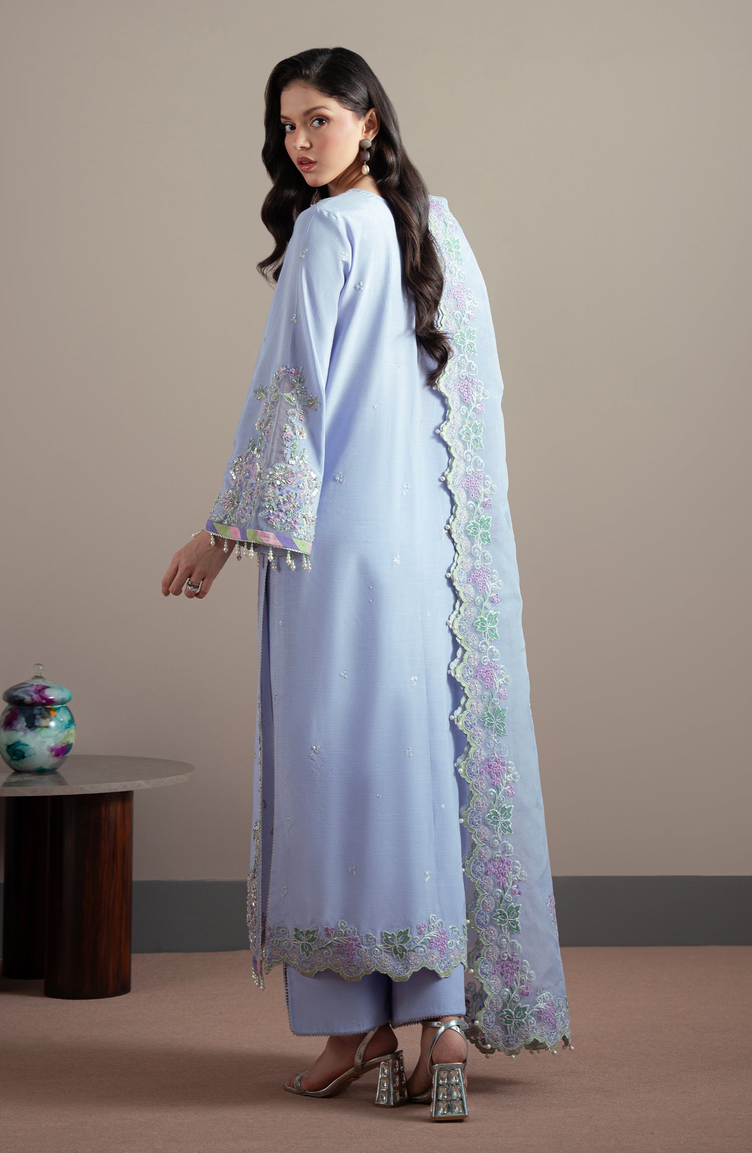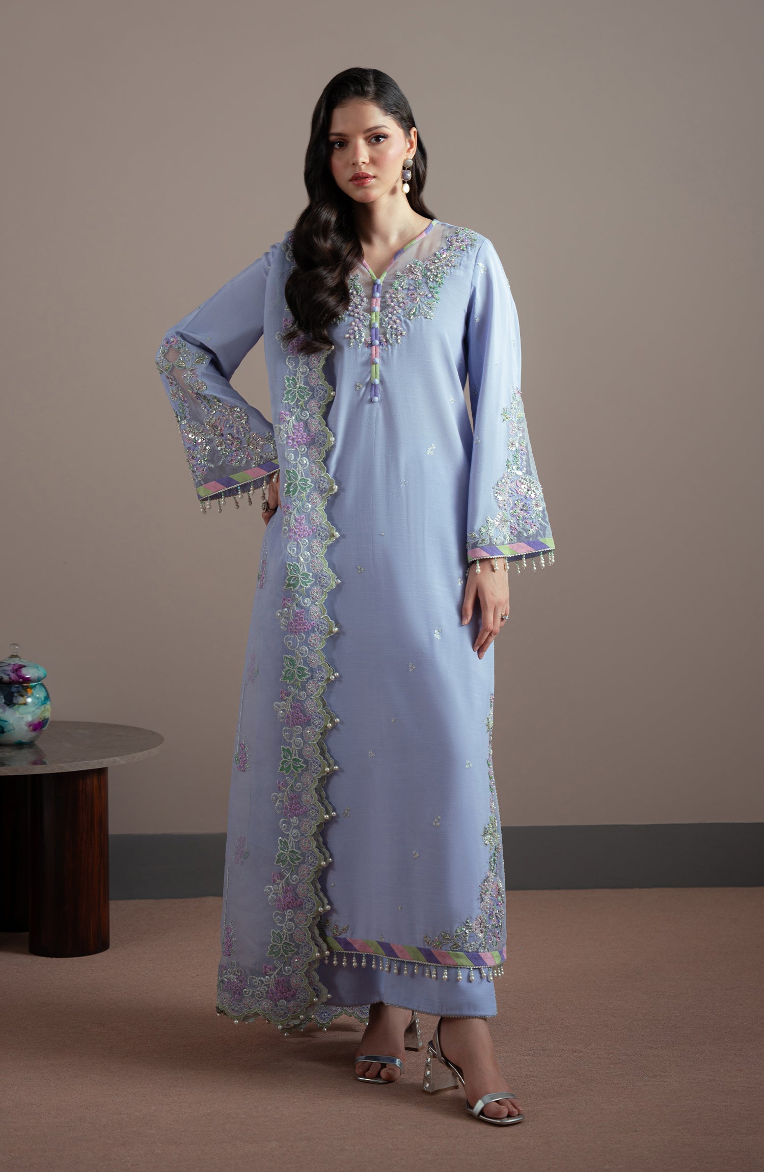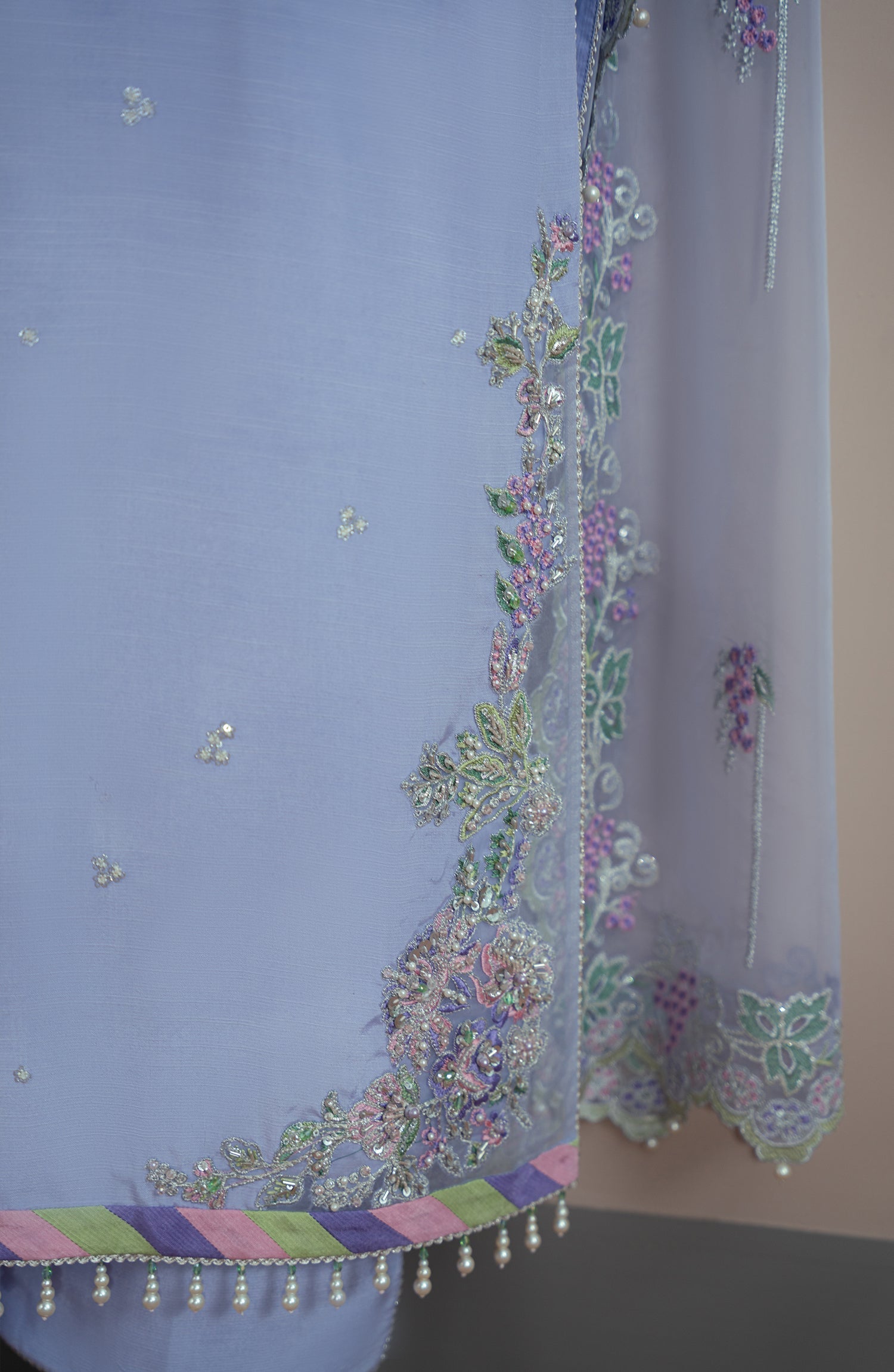 Fabiha Fatima Elvin Embroidered Raw Silk 3Pc Pret Suit - IRIS