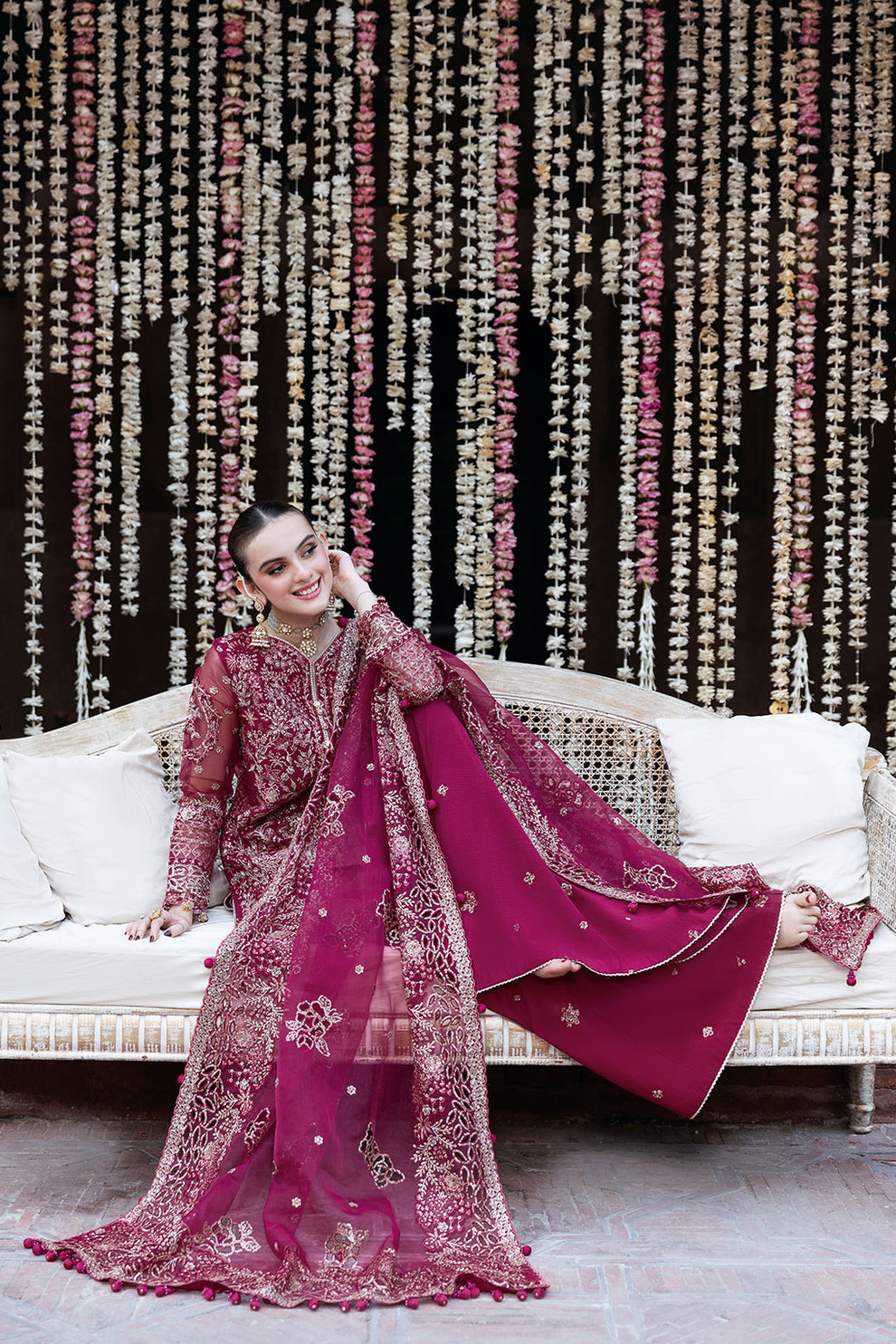 • DESCRIPTION: This enchanting deep pink ensemble is a timeless ode to grace and tradition. The short kameez is adorned with intricate embroidery, featuring a rich blend of dabka, Resham, and sequins that create exquisite floral motifs. The sheer sleeves add a touch of modern elegance while maintaining its regal allure. Paired with wide-leg trousers in a matching hue and a beautifully embellished dupatta featuring heavy borders and delicate detailing, this outfit is perfect for wedding festivities and formal soirées.