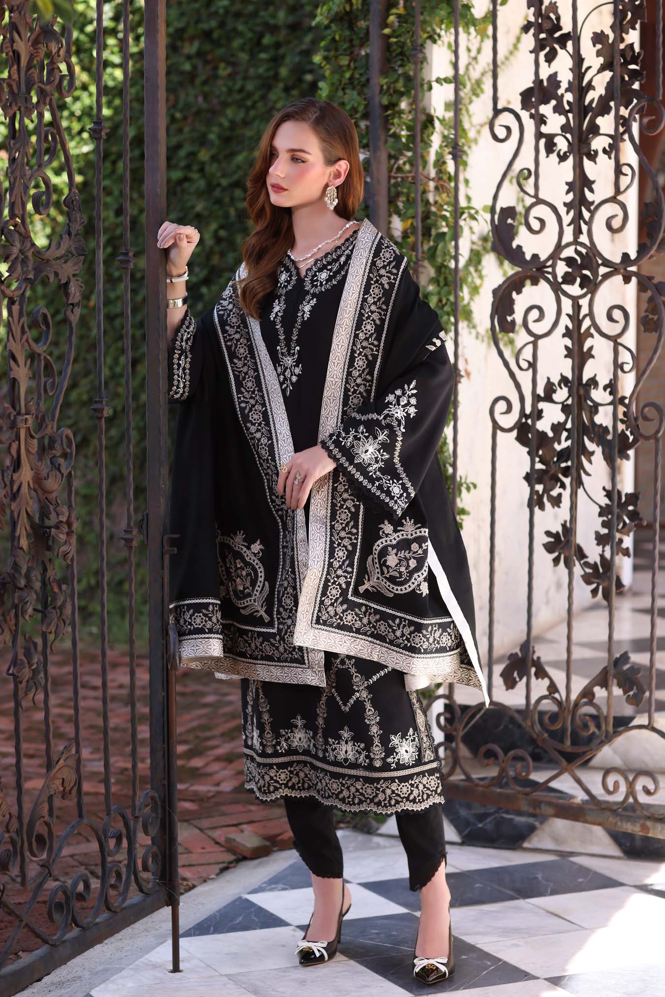 Noor by Saadia Asad Embroidered Linen Unstitched 3Pc Suit D-07 Obsidian