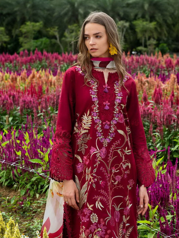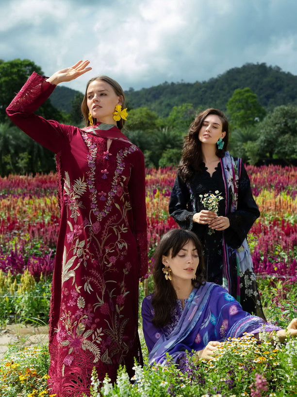 • Womens Unstitched Embroidered Lawn 3Piece Suit