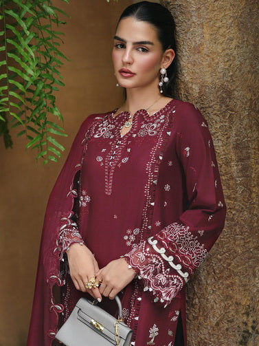Qalamkar Qline Embroidered Lawn Unstitched 3Pc Suit RP-12 GARNET