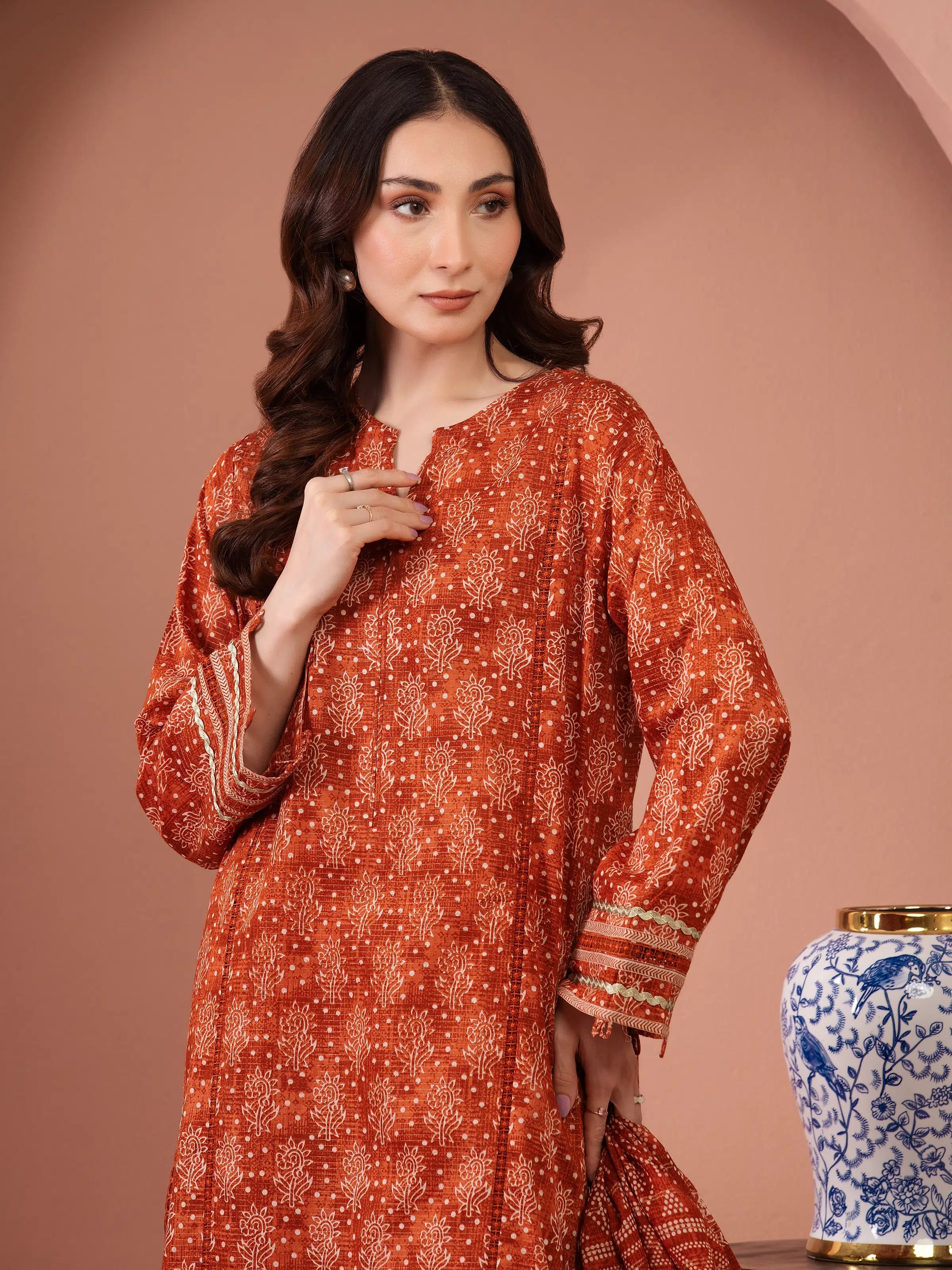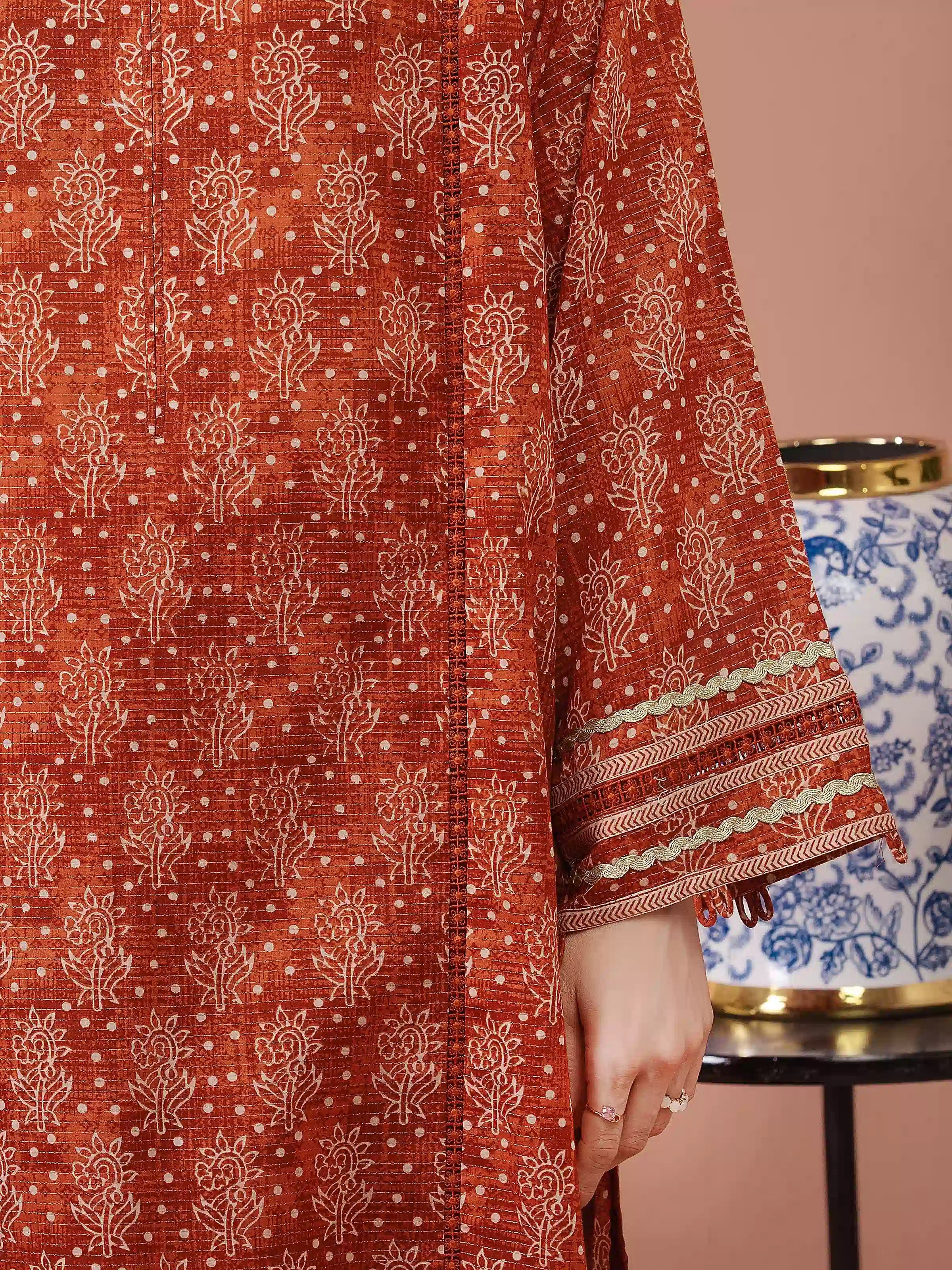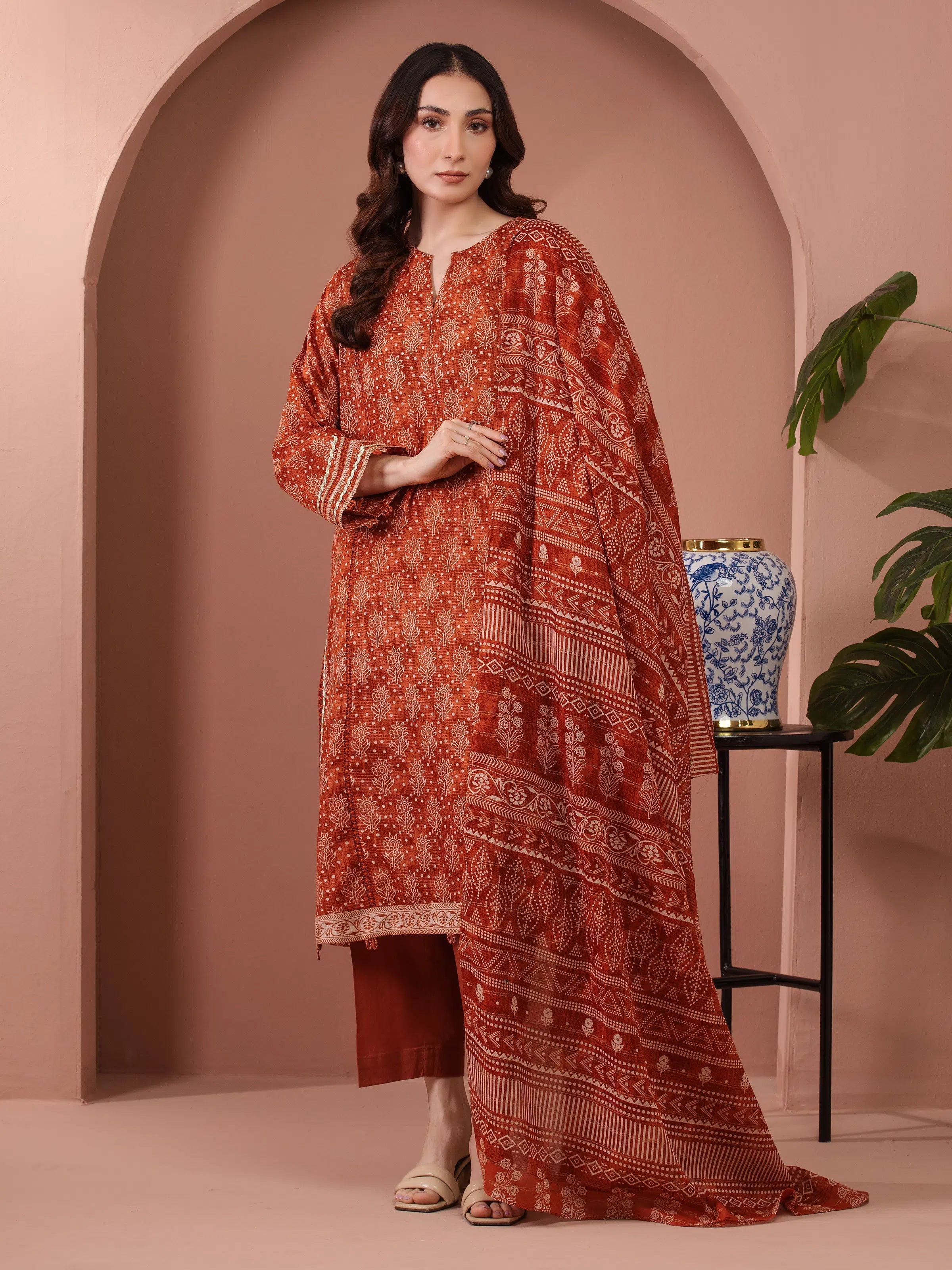 edenrobe Merak Unstitched Printed Zari Lawn 3Pc Suit EWU5M6-021