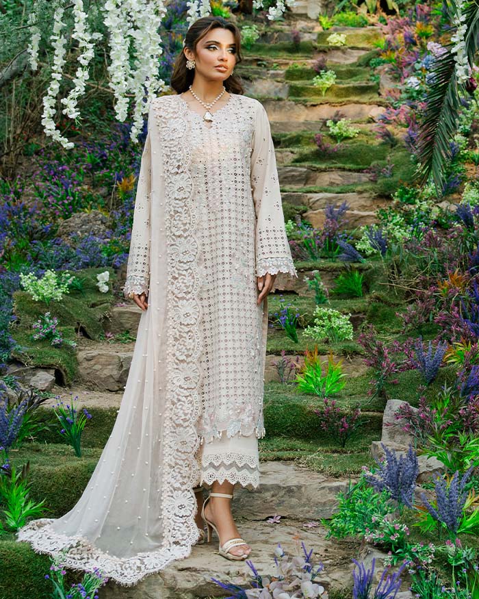 Zevk Flora Festive Embroidered Lawn Unstitched 3Pc Suit - ASEEL