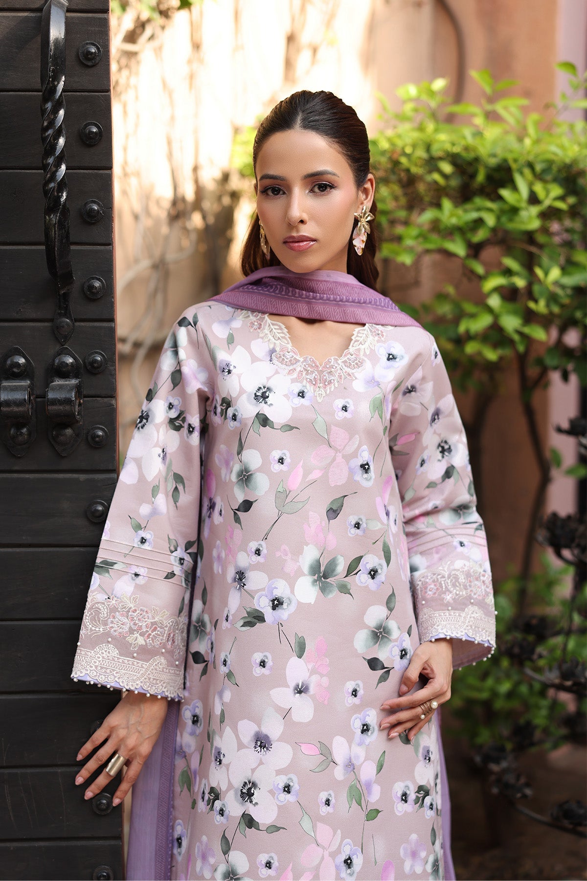 - DESCRIPTION: Pastels have never looked more captivating.“Tirana” features a soft pink, floral-printed lawn shirt adorned with delicate embroidery for a touch of refined sophistication. Paired with printed lawn trousers and a lightweight chiffon dupatta, this ensemble beautifully blends modern flair with timeless elegance—offering a chic, effortless aesthetic.