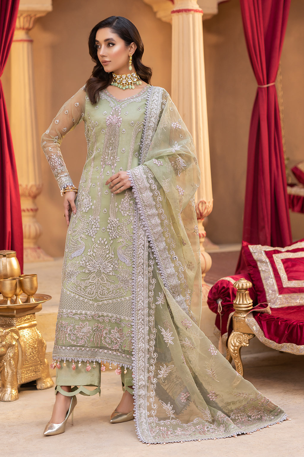Dastgah by Neeshay Embroidered Organza Unstitched 3Pc Suit - RANG-E-BAHAR