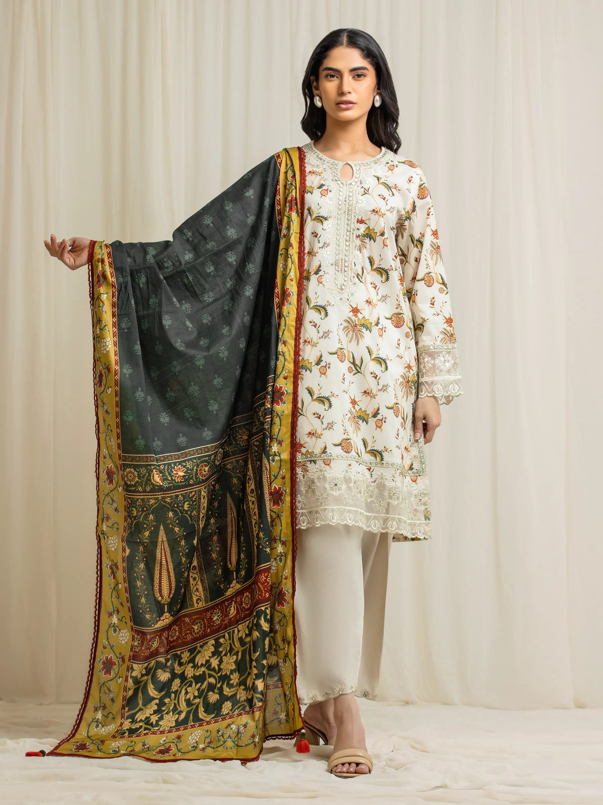 edenrobe Premium Festive Unstitched Lawn 3Pc Suit EWU6V1-33022