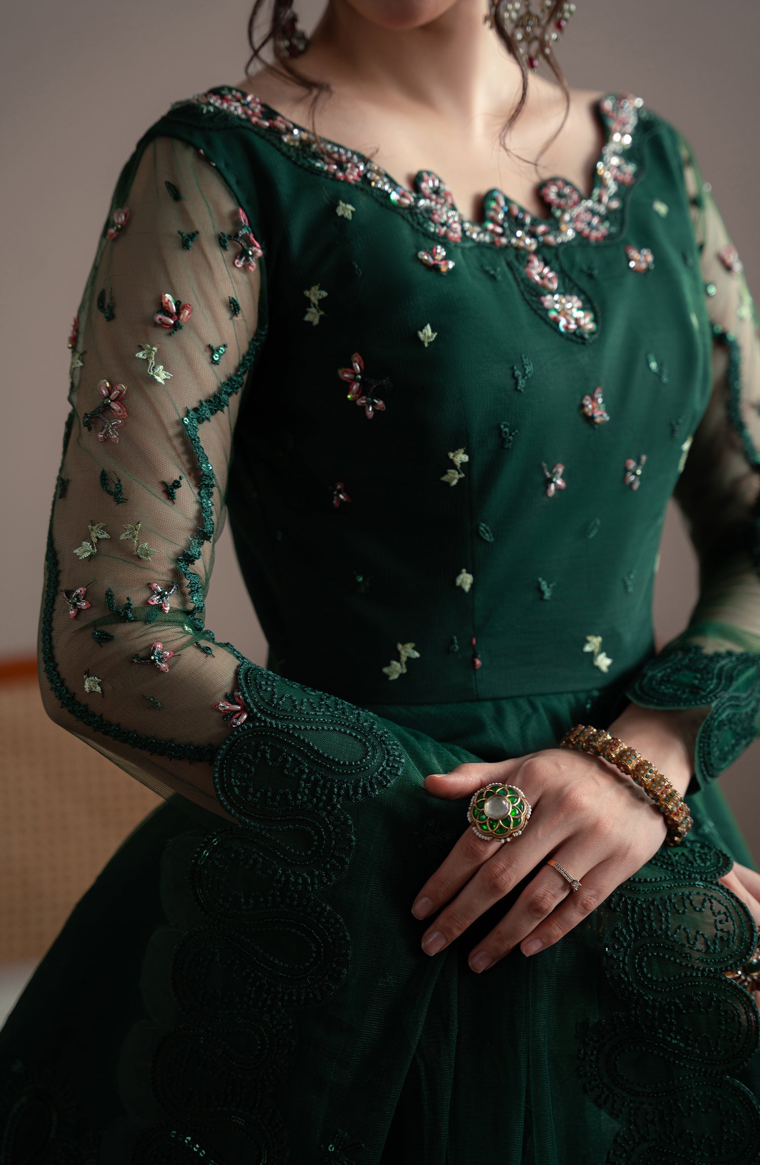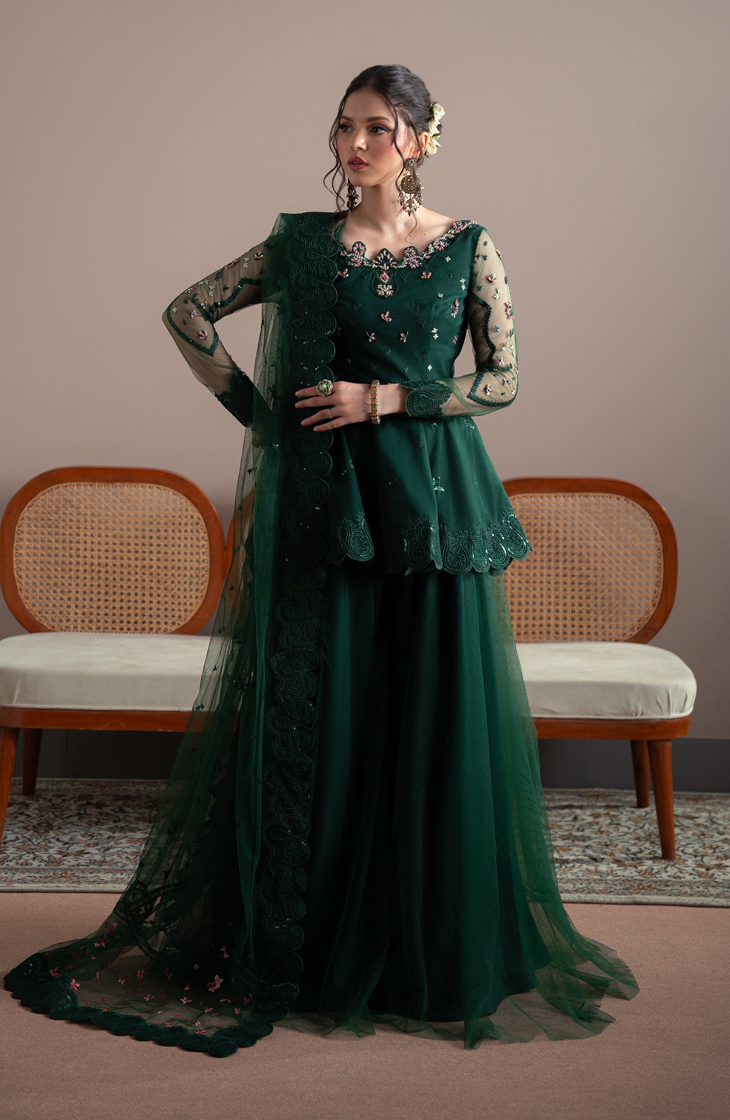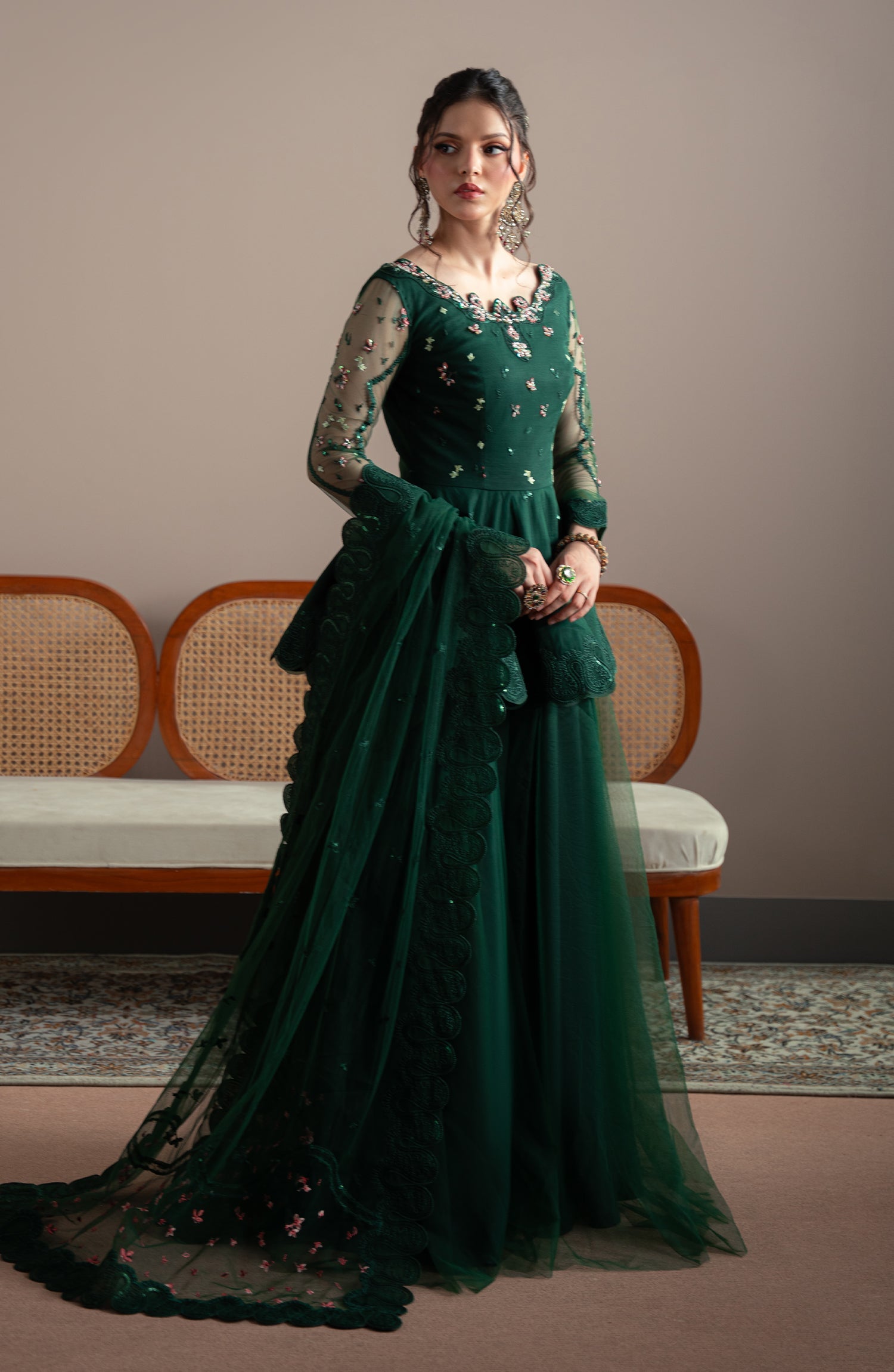 Fabiha Fatima Elvin Embroidered Net 3Pc Pret Suit - EMERELLE