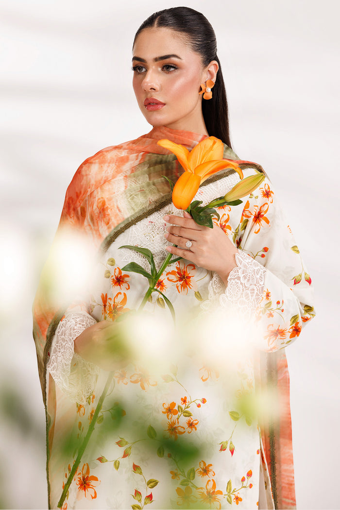 Farasha Summer Essentials Embroidered Lawn Unstitched 3Pc Suit - Soft Marigold